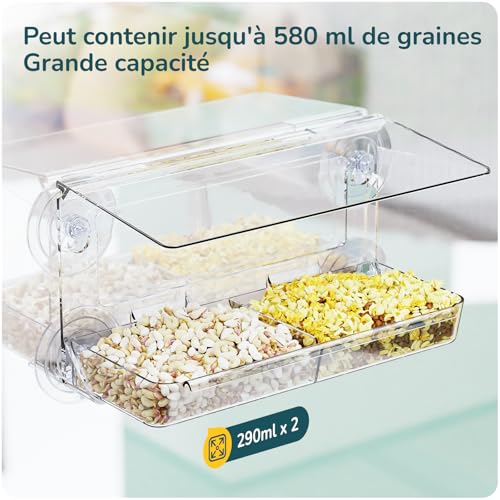 Grande Mangeoire à Oiseaux pour Fenêtre Transparente 26 x 14 x 5 cm – Window Bird Feeder – pour Oiseaux Sauvages et Extérieur, Cadeaux Uniques