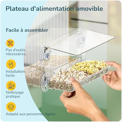 Cette mangeoire à oiseaux Mrcrafts est facile à enlever et à ranger, parfaite pour attirer une variété d’oiseaux dans votre jardin. La large ouverture le rend facile à remplir et à nettoyer. La mangeoire est fabriquée en plastique durable et résistant aux intempéries, et quatre ventouses la maintiennent fermement à votre fenêtre. Le design amovible est pratique pour le démontage et le nettoyage. Vous pouvez le ranger lorsque vous n’en avez pas besoin. Il ne prend pas trop de place et prolonge la durée de vie du produit. Le design transparent vous permet de voir quand il doit être rechargé