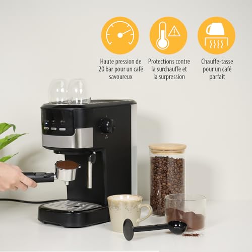 Conçue avec soin, la machine à espresso Tristar CM-2278 présente des porte-filtres en aluminium, une buse à vapeur pour cappuccino et des accents en acier inoxydable, ajoutant une touche d’élégance à votre cuisine. Avec une protection contre la surchauffe et la surpression, ainsi qu’un réservoir d’eau amovible de 1,25 litre, cette machine privilégie la sécurité et la commodité.