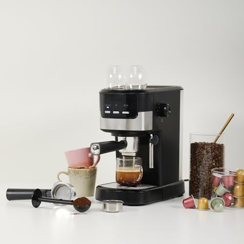 Puissante Pompe de 20 Bars : Cette machine à espresso est équipée d’une puissante pompe de 20 bars. Cela signifie qu’elle peut extraire un maximum de saveur de vos grains de café, vous offrant ainsi un espresso riche et délicieux avec une couche crémeuse.