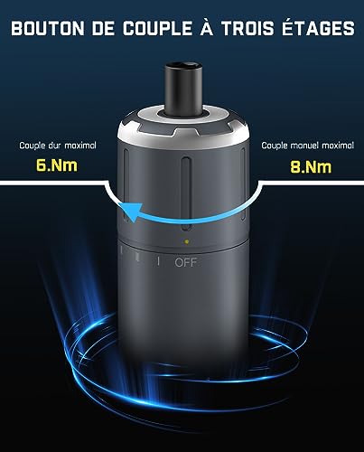 【Top-Notch Performance】Equipé de 3 niveaux de couple de 1.5/3/4.2N.m et d’un couple maximum de 6N.m, ainsi que d’un couple manuel de 8N.m. Arrêt immédiat dès que le doigt se lève, travaillez intelligemment et non pas durement. Cette puissante visseuse électrique offre des forces de couple précises pour vos travaux manuels. Idéal pour l’assemblage et la réparation de meubles, climatiseurs, robinets, prises de courant, ordinateurs de bureau, etc.