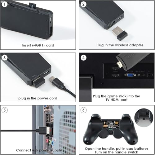 【Plug and Play】 Console de jeux vidéo Plug and Play, il suffit de la brancher sur votre téléviseur, de l’allumer et de choisir librement vos jeux préférés sur votre téléviseur, mais n’oubliez pas de sélectionner le bon canal HDMI sur votre téléviseur !
