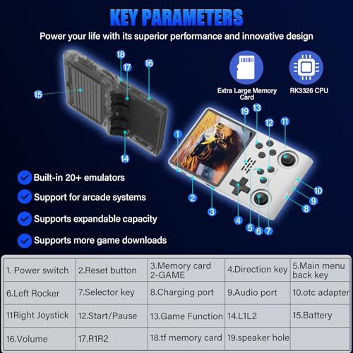 【256G Storage】- Cette console de jeu portable est livrée préchargée avec plus de 30000 jeux et prend en charge plus de 20 émulateurs. Avec sa capacité de stockage de 256G, vous pouvez profiter d’une vaste bibliothèque de jeux, et il y a une option pour insérer une carte TF supplémentaire pour étendre votre collection de jeux encore plus loin.