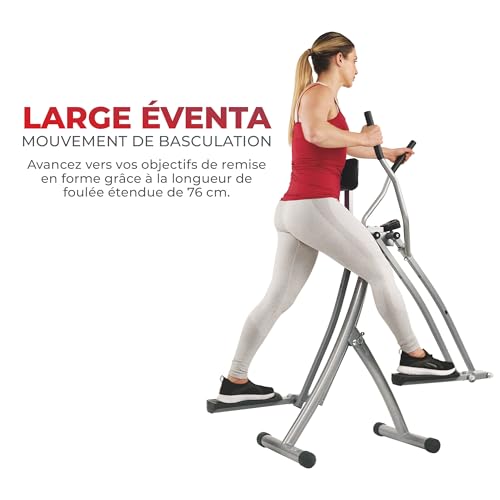 L’elliptique Sunny Health & Fitness SF-E902 Air Walk propose un entraînement aérobique, vous offrant tous les avantages des étirements, de la marche, de la course, du ski de fond, du ski et de la danse aérobique sans chocs ni mouvements dommageables pour votre corps. Cet appareil elliptique Air Walk peu encombrant se plie à la moitié de sa taille, ce qui le rend facile à ranger dans votre placard ou dans un espace restreint. Le mouvement de foulée produit une légère torsion de la section médiane engageant à la fois le haut et le bas du corps. vous obtiendrez un entraînement complet du corps à chaque fois que vous vous entraînerez !